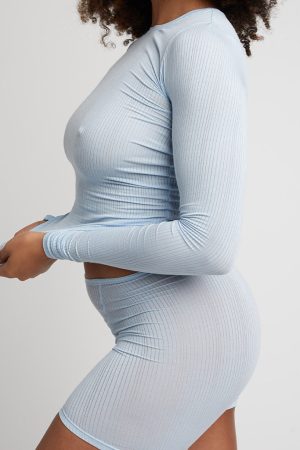 - Long sleeve. crew neck. a little extra length to ruche up or down